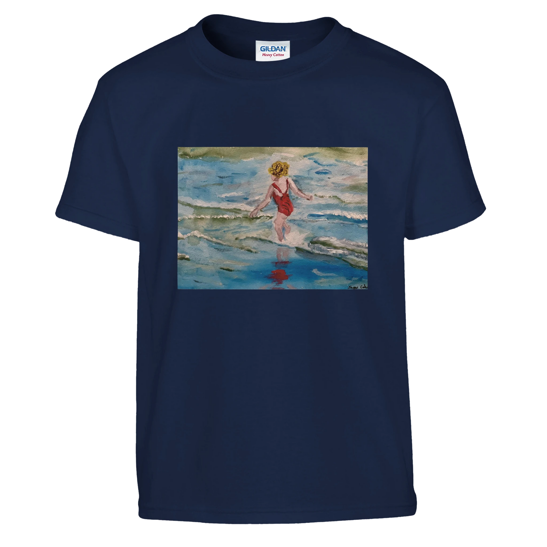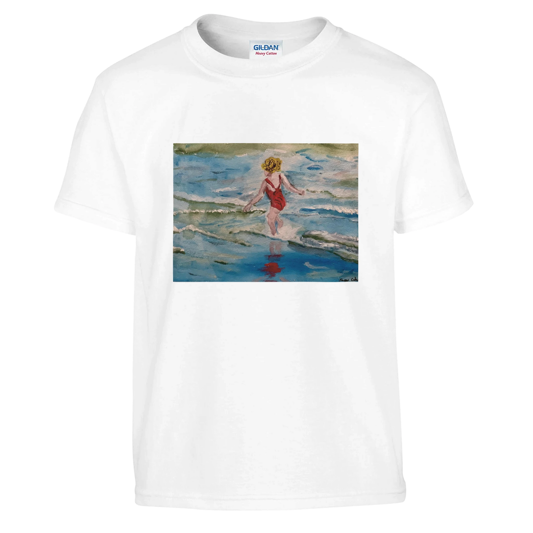 Classic Kids Crewneck T-shirt | Gildan® 5000B custom art child at seashore